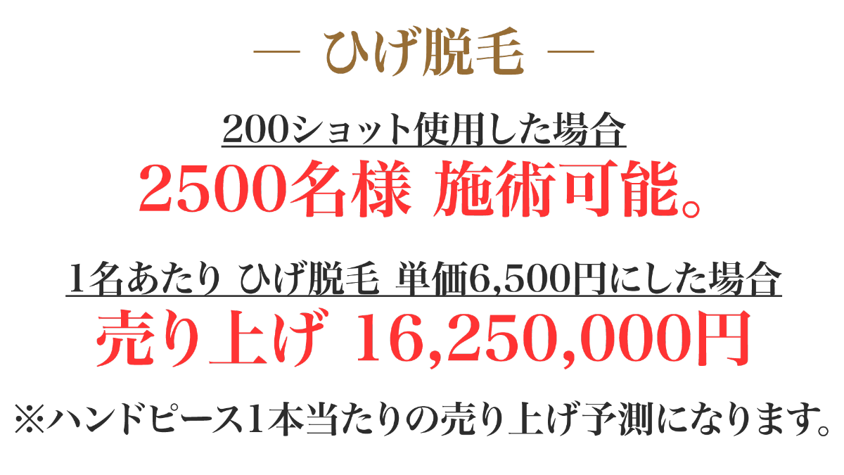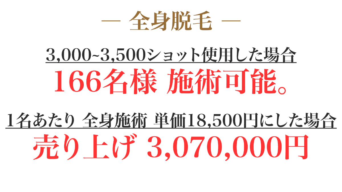 0.2円の脱毛器に比べて、ランニングコストが200万円~250万円の差額がでます。